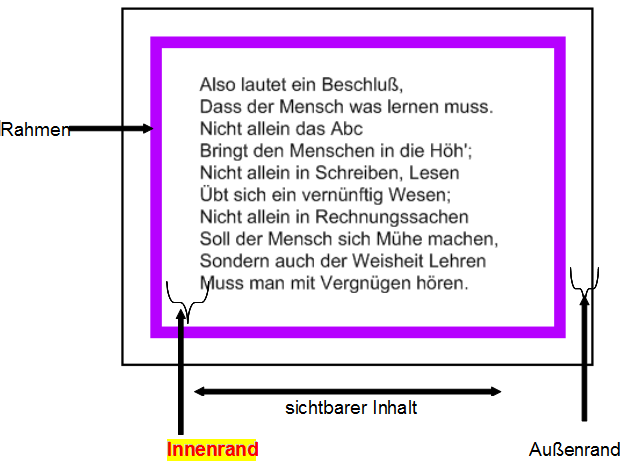 - ein Wert: der Wert gilt für alle vier Seiten des Innenrands
